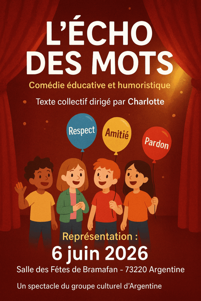 Le groupe théâtral fera une représentation au théâtre Gérard Philippe à St Jean de Maurienne et lors de notre gala de fin de saison le 6 juin 2026.